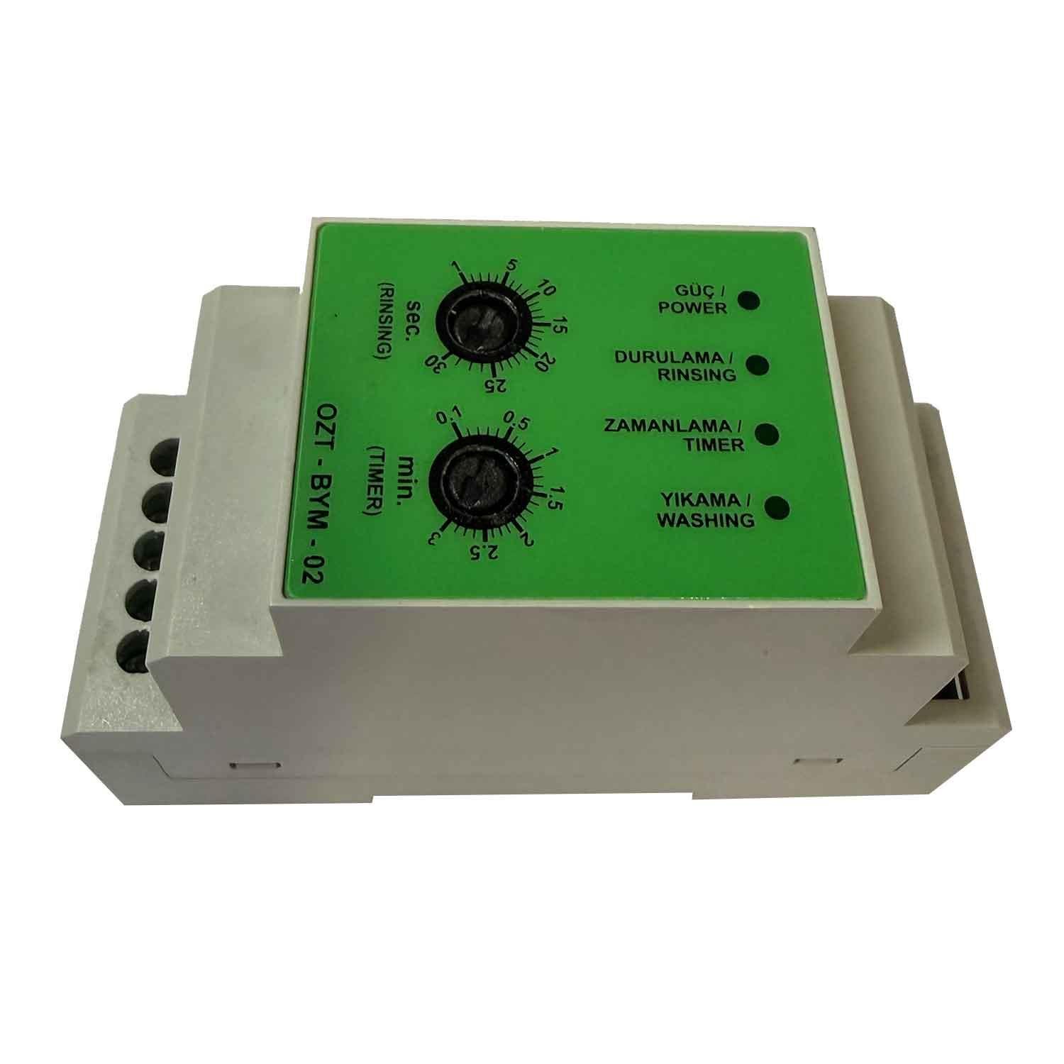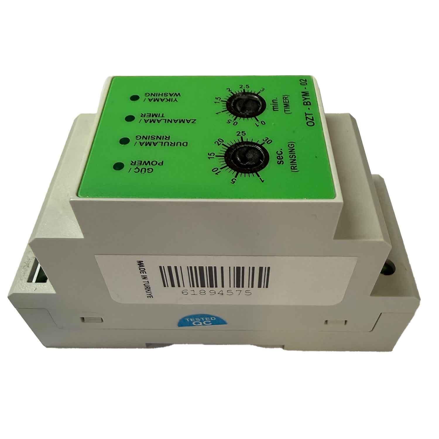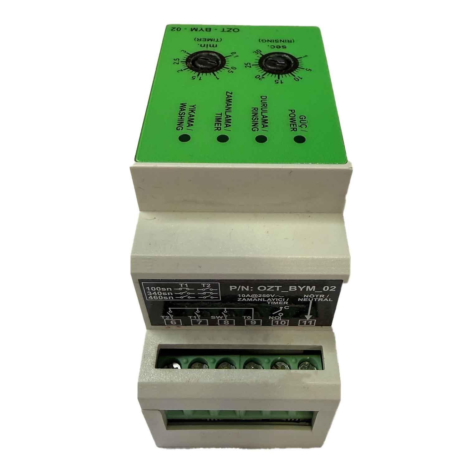Öztiryakiler BYM Yıkama Durulama Zaman Rolesi, bulaşık makinelerinin yıkama ve durulama sürelerini otomatik olarak kontrol eden önemli bir elektronik parçadır. Yeşil renkli bu orijinal zaman rolesi, cihazın yıkama döngülerini doğru şekilde yöneterek hem enerji hem de su tasarrufu sağlar.